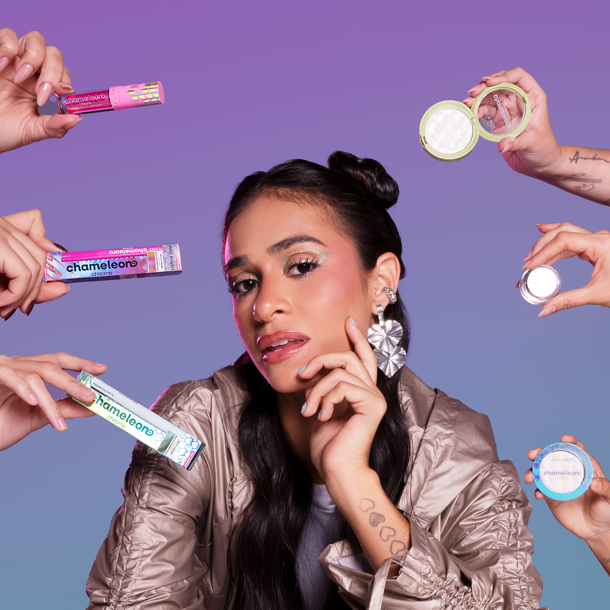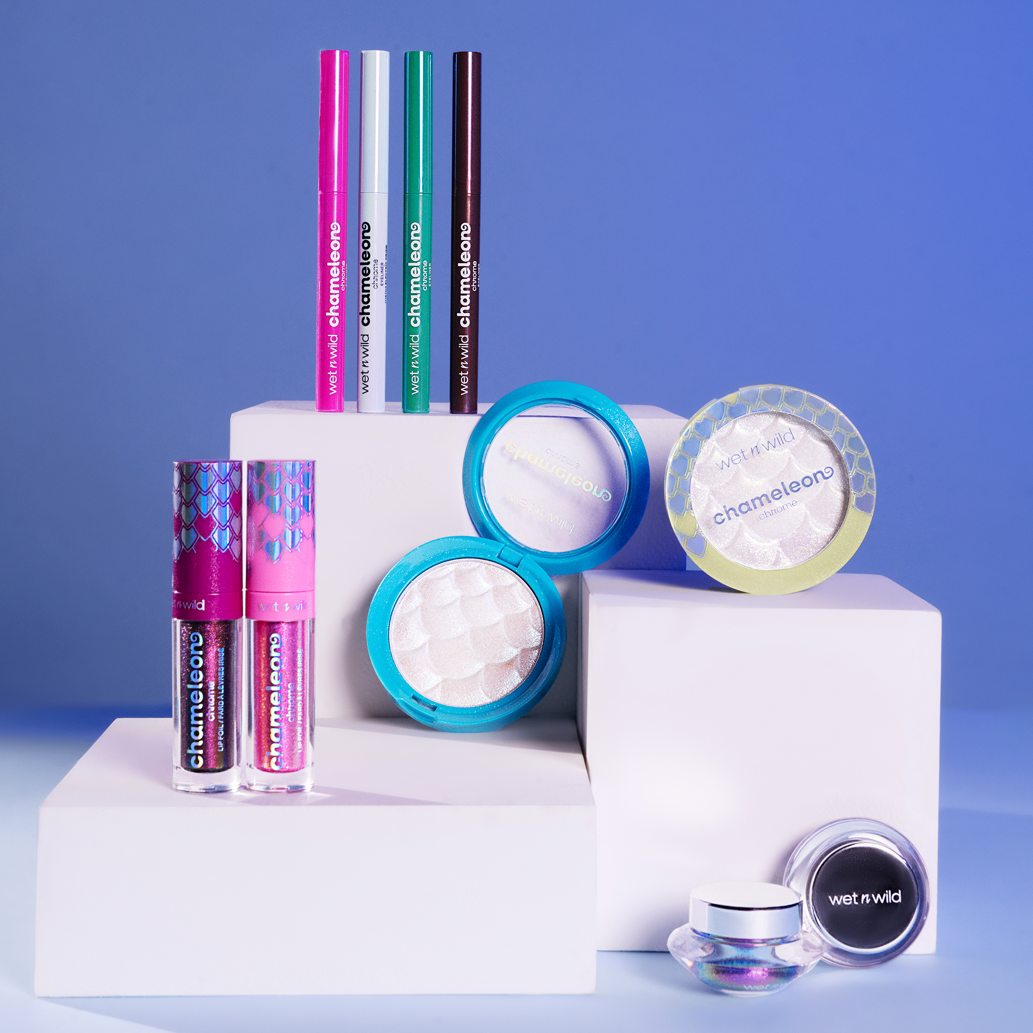- Prepare-se para uma coleção tão única quanto você! Apresentamos a Coleção Chameleon Chrome! Nossos pigmentos revolucionários reagem à luz, mudando e brilhando com cada fonte de luz, transformando seu visual em todos os ângulos.